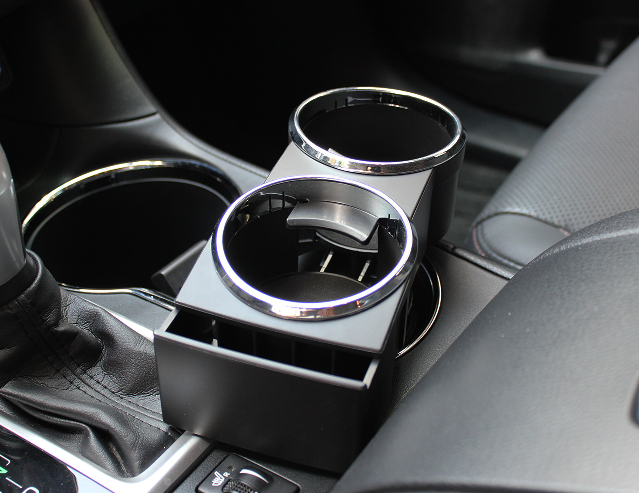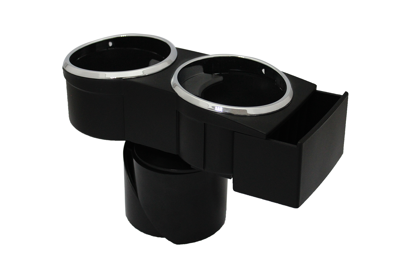 商品名稱:雙口飲料附托盤架 材質:ABS 商品編號:J5093 速別:車載飲料支架 顏色:黑