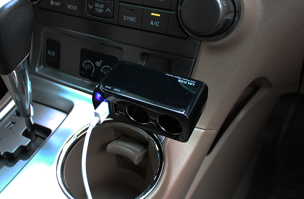 商品名稱:雙USB一拖二點煙器 材質:PC 商品編號:J7391 掛載:10A 電壓輸入:12-24V USB輸出:5V/4200mA 顏色:黑 速別:車載充電器 商品產地:中國