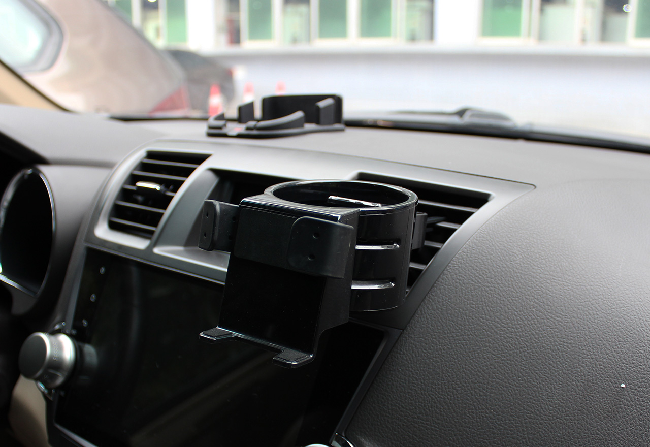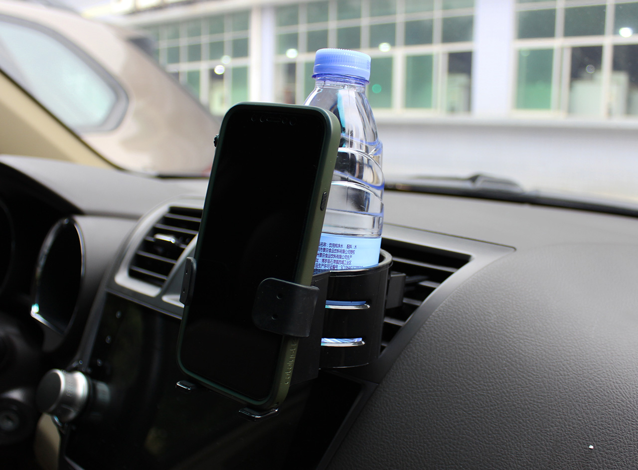 商品名稱:出風口式車載手機飲料架 材質:PC/TPE/POM 商品編號:J5107 速別:車載飲料支架 顏色:黑 商品產地:中國